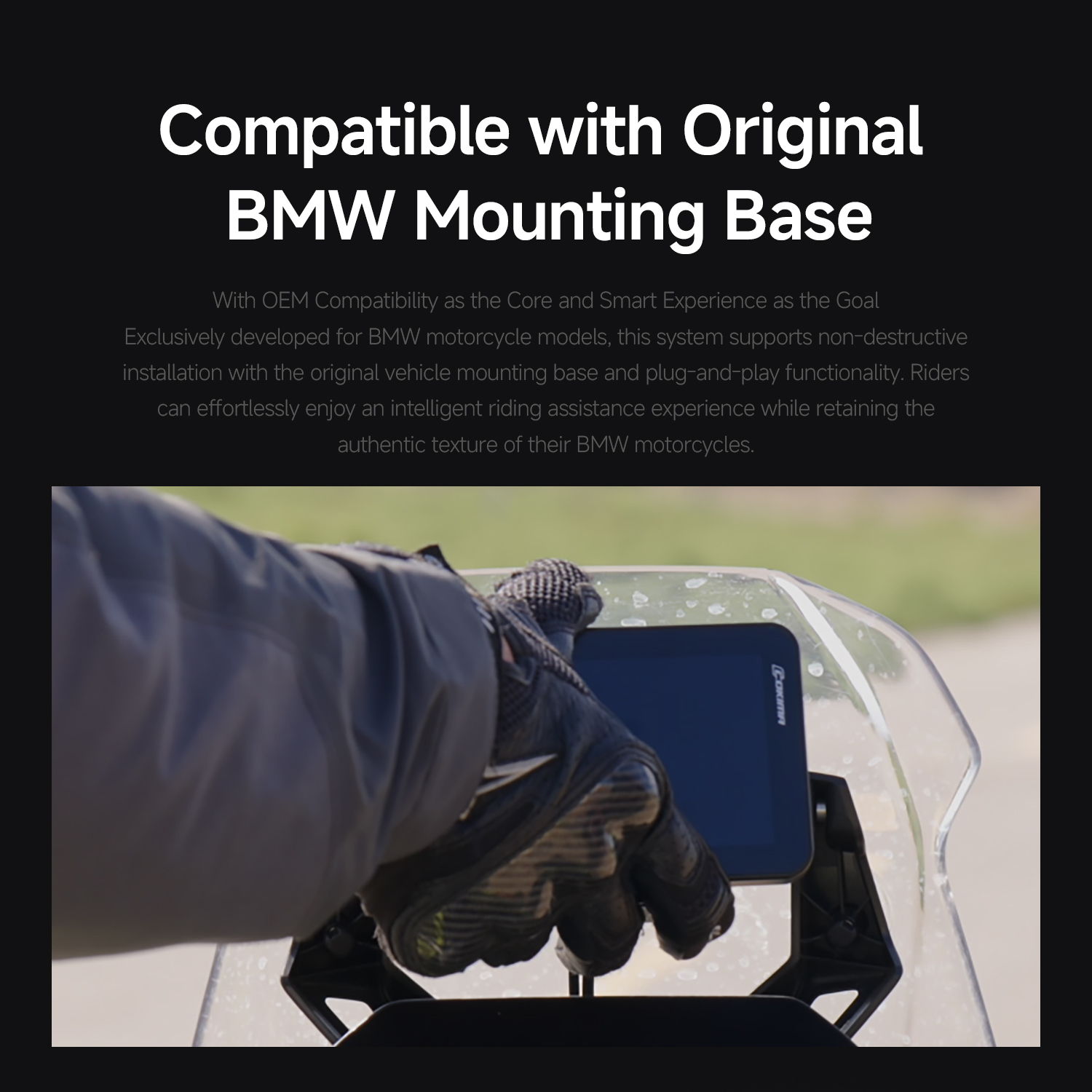 El sistema se integra nativamente con los comandos originales de BMW, permitiendo un control directo, intuitivo y sin modificaciones visibles, manteniendo la estética y funcionalidad original de la motocicleta.